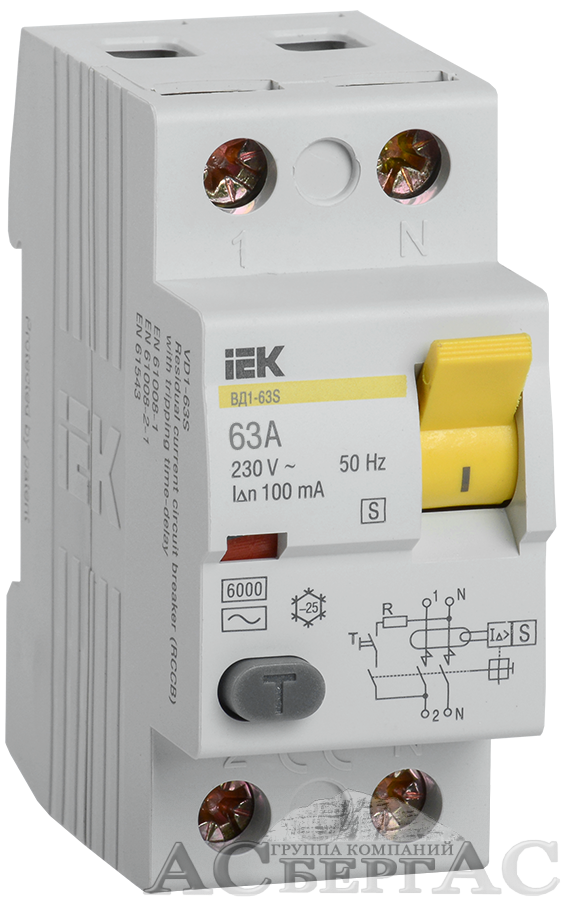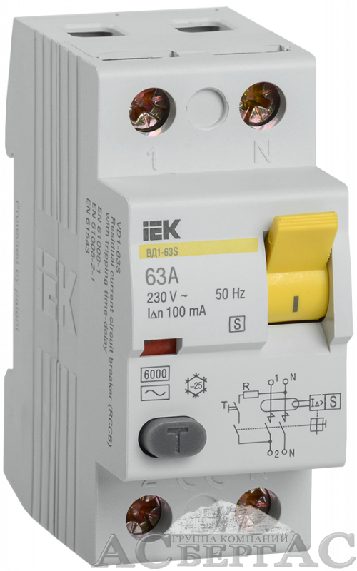ВД1-63S Блок утечки тока 2-полюсный 63А 100mA, 4,5kA, тип AC-S ИЭК