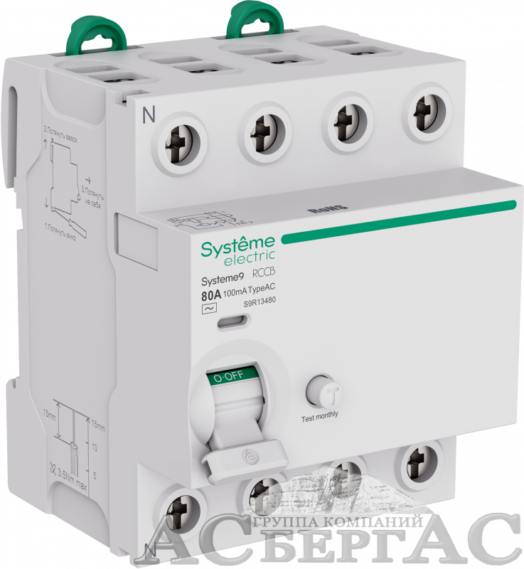 Блок утечки тока 4-полюсный, 80A, 100mA, Тип-AC Systeme9 Systeme Electric