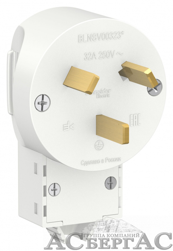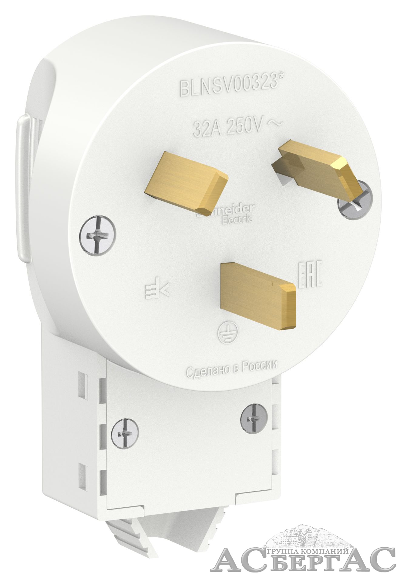 Вилка силовая 2Р+N, С/У, 32А 250В (белый) Blanca Systeme Electric