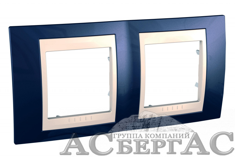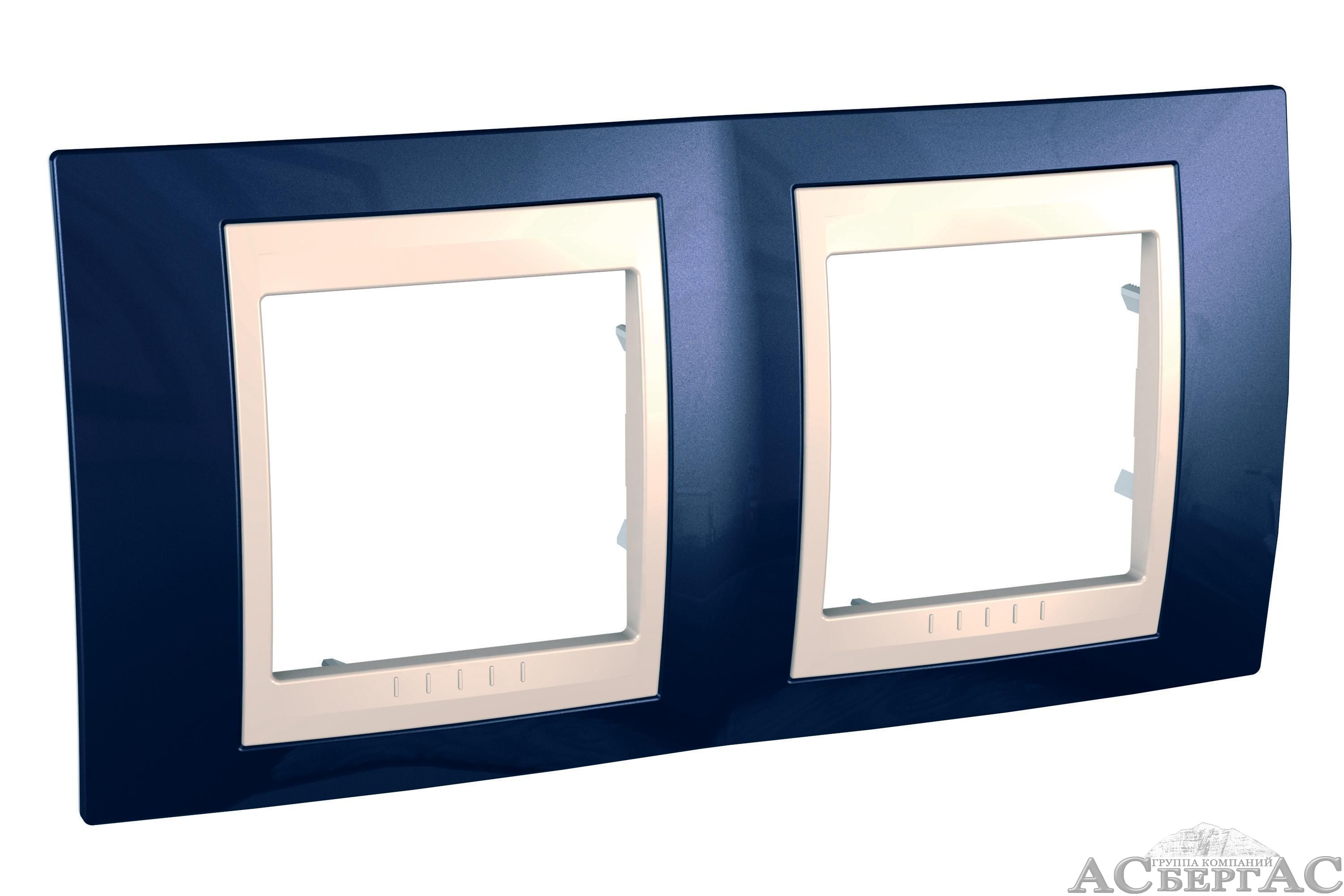 Рамка 2-постовая горизонтальная (бежевый/индиго) Unica Хамелеон Schneider Electric