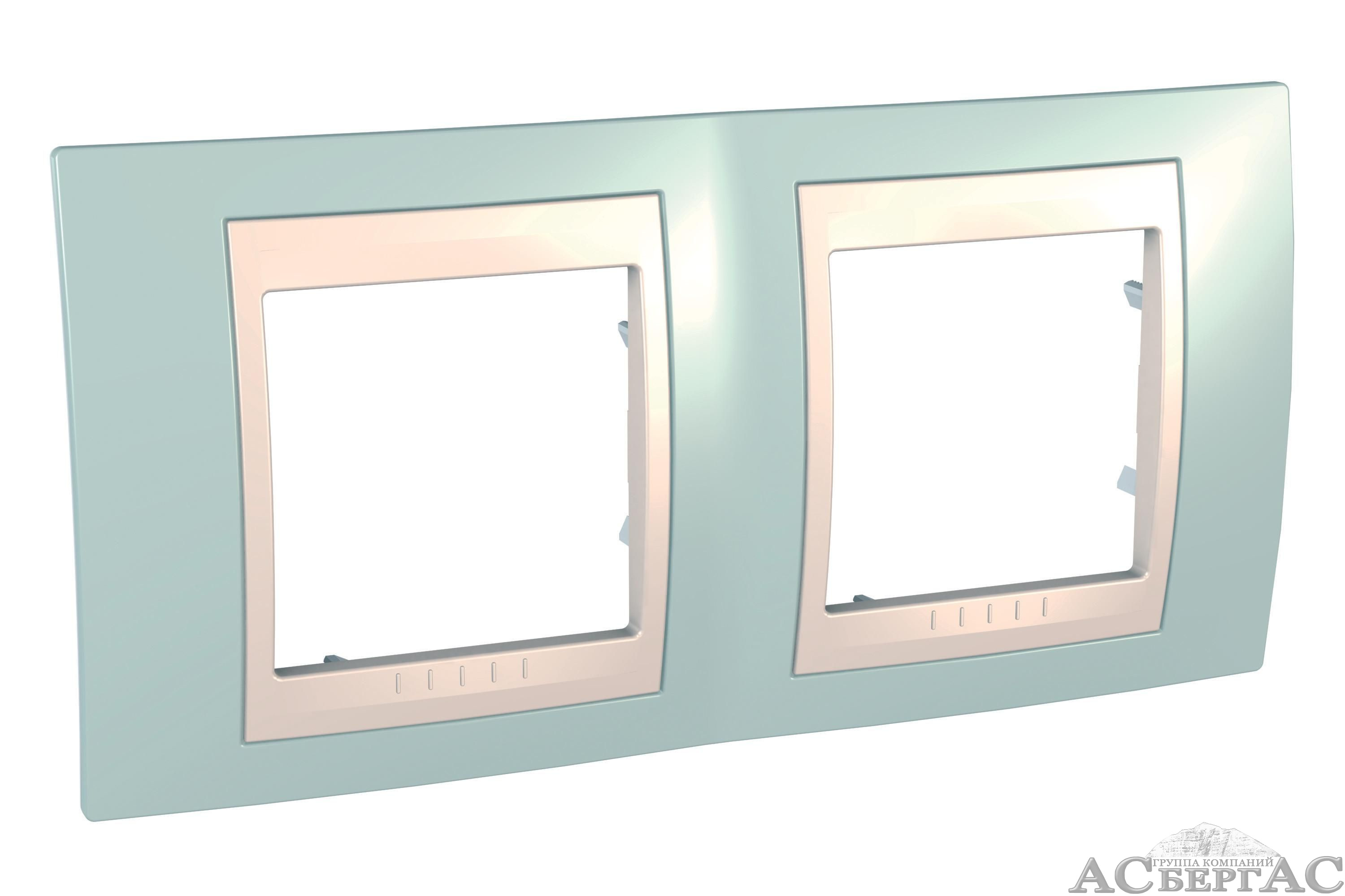 Рамка 2-постовая горизонтальная (бежевый/морская волна) Unica Хамелеон Schneider Electric