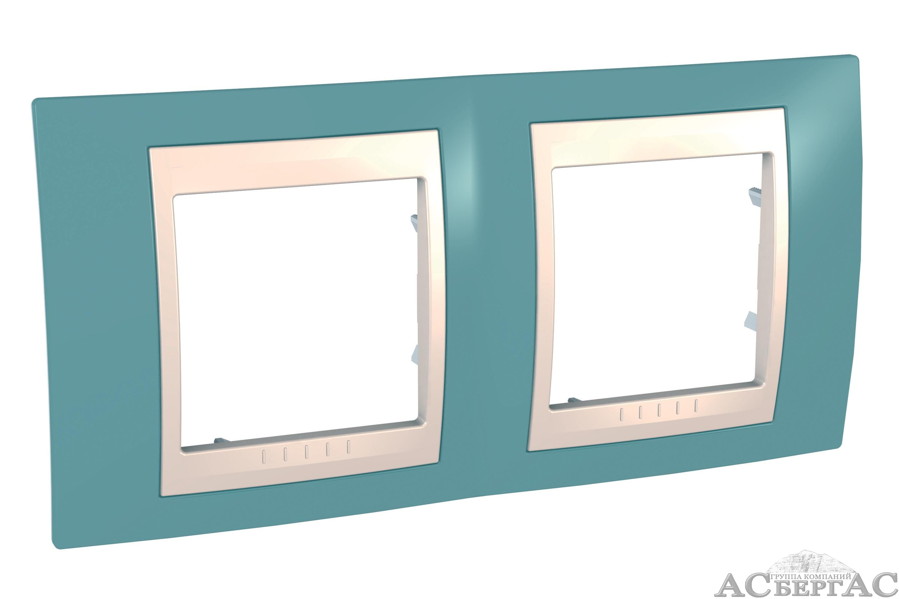 Рамка 2-постовая горизонтальная (бежевый/синий) Unica Хамелеон Schneider Electric