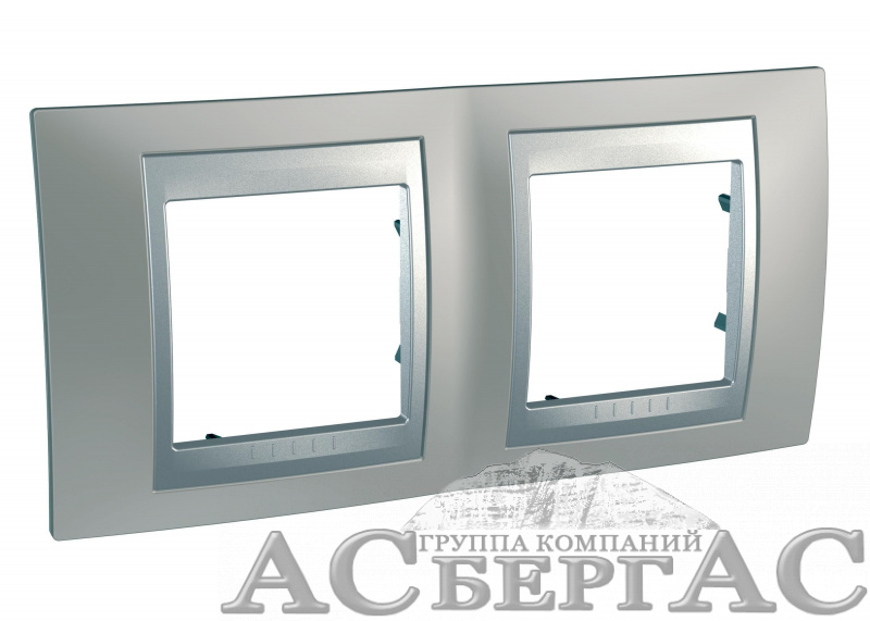 Рамка 2-постовая горизонтальная (алюминий/никель) Unica Top Schneider Electric