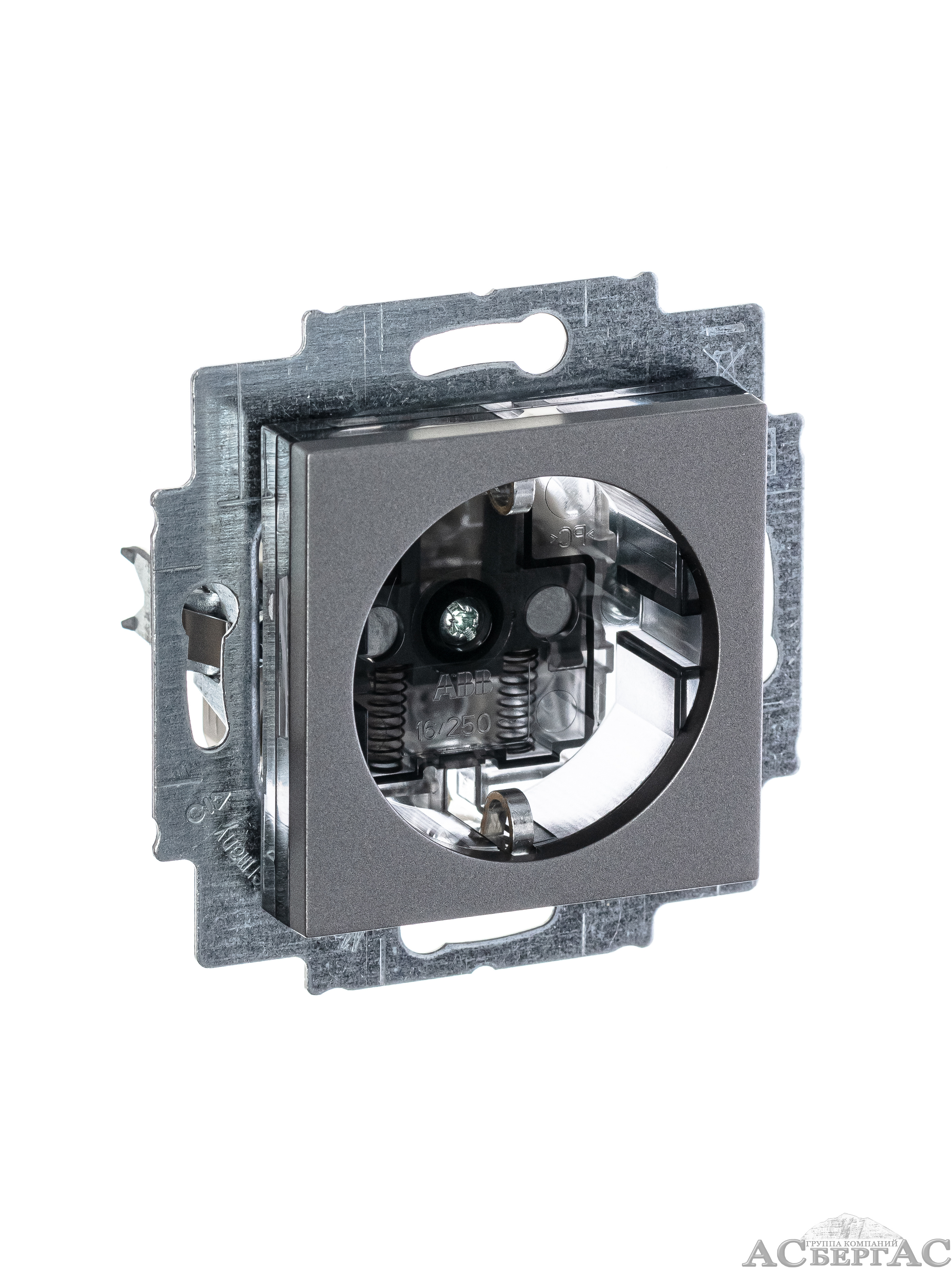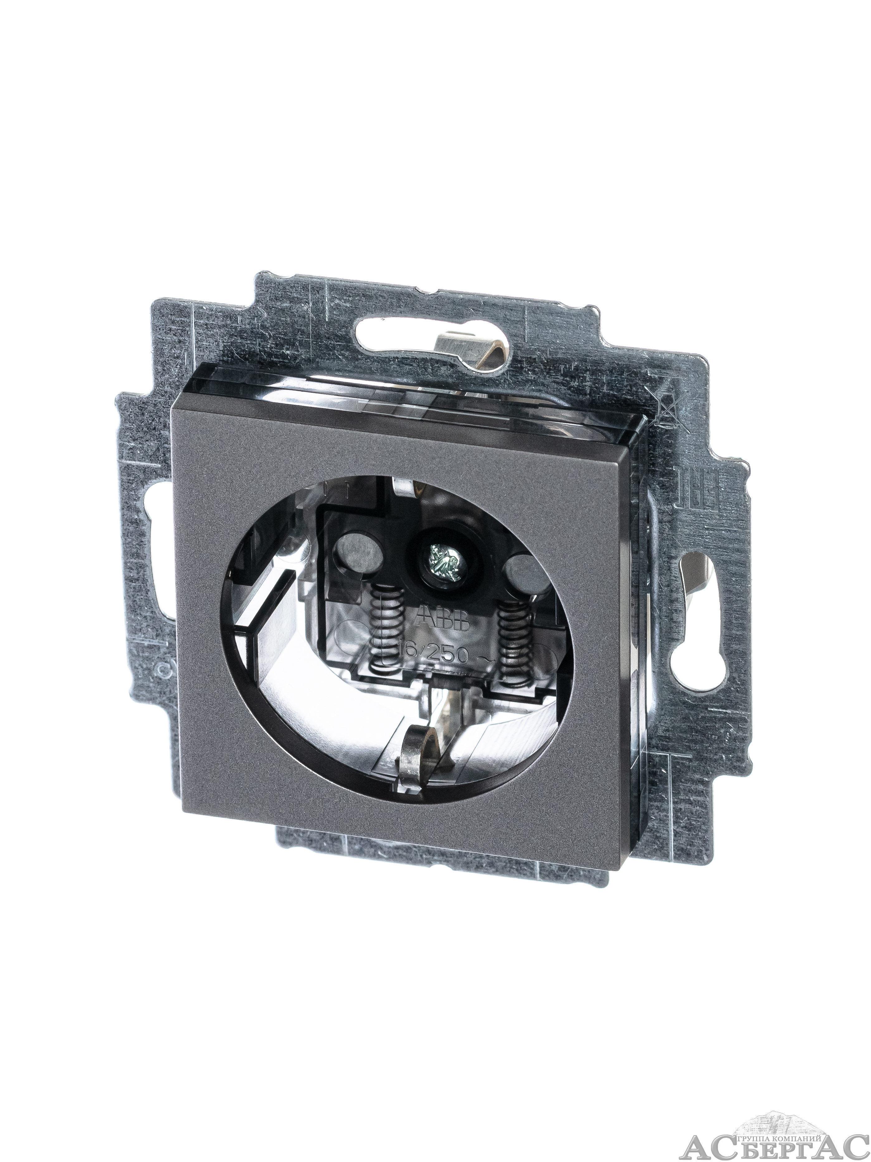 5520H-A03457 69W Розетка с заземлением со шторками, Levit, сталь/дымчатый чёрный ABB