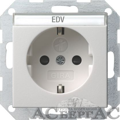 Розетка со шторками и полем для надписи (белый матовый) System 55 GIRA