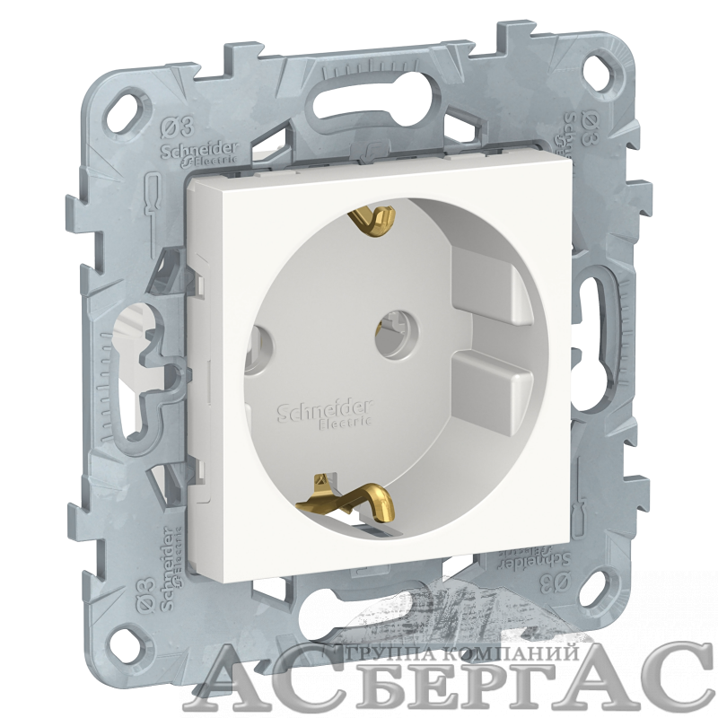 Розетка с заземлением, без шторок, винтовой зажим, 16А, 250В (белый) Unica New Schneider Electric