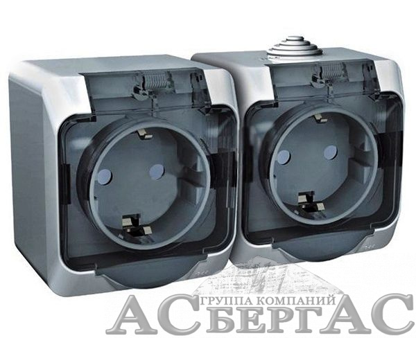 Розетка двойная с заземлением, со шторками, О/У, 16А, 250В, IP44 (cерая) Этюд Systeme Electric