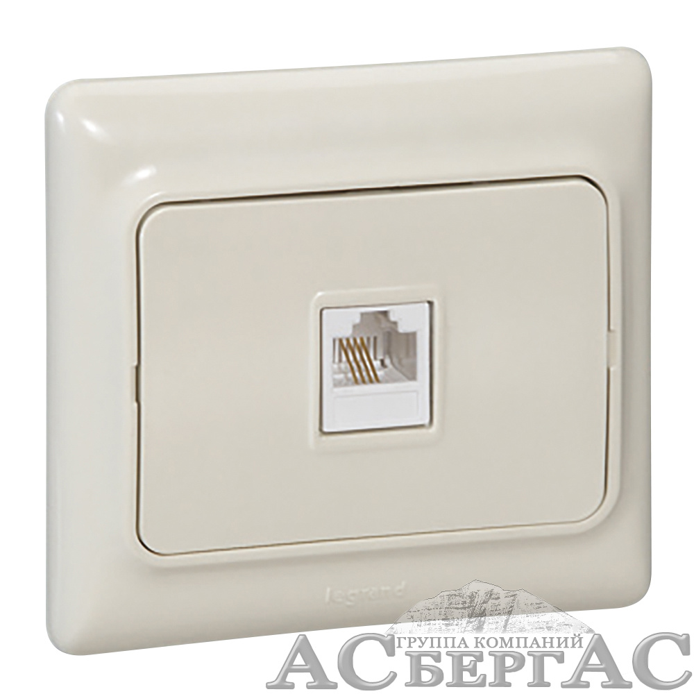 Розетка телефонная, RJ11, безвинтовой коннектор (сл. кость) Legrand