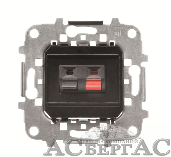 8157.1 Мех-зм аудиоразъёма для подкл. громкоговорителей/динамиков (прищепки), чёрный+красный, 2-модульный, Sky/Skymoon ABB