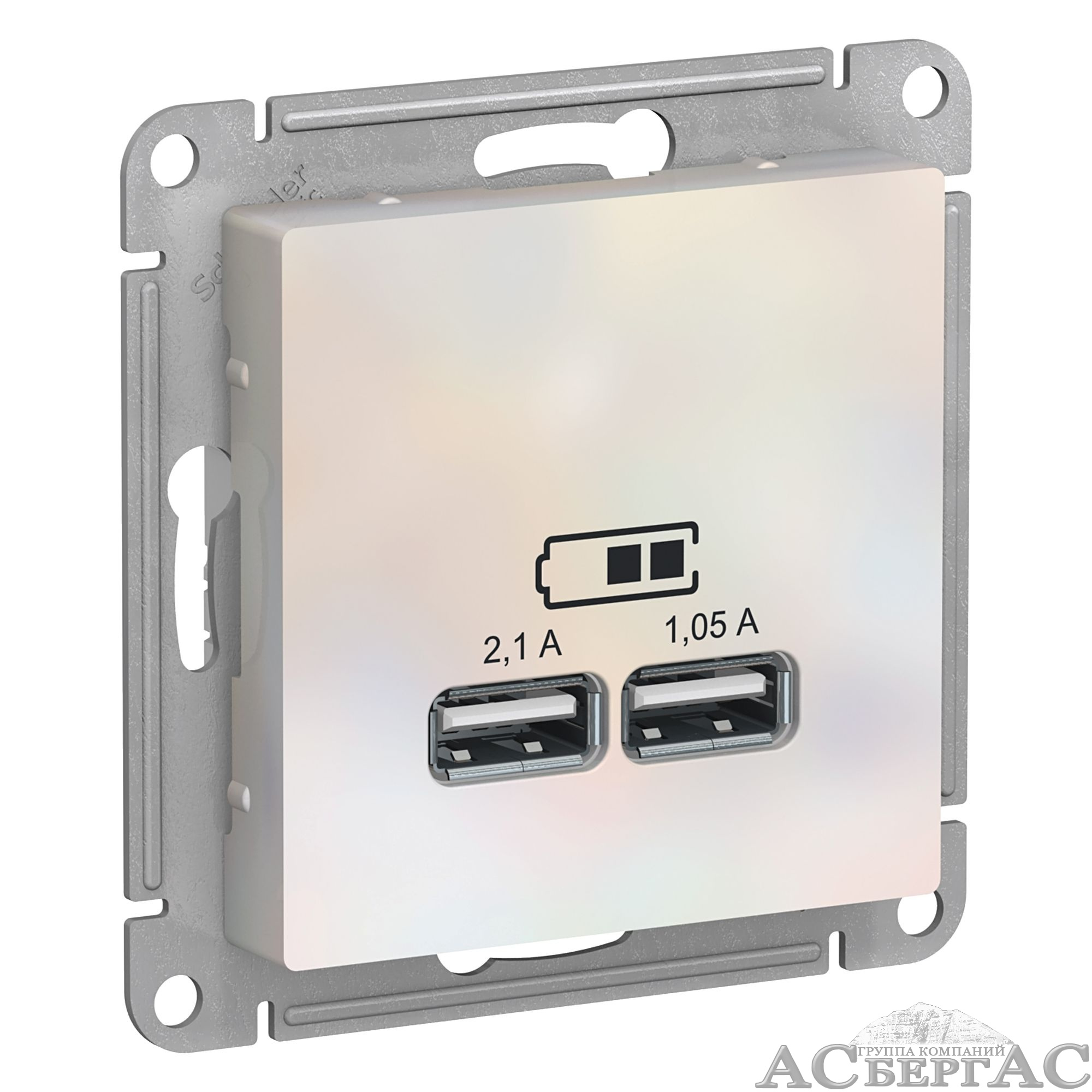 Розетка USB, 5В, 1 порт x 2,1 А, 2 порта х 1,05 А, механизм (жемчуг) Atlas Design Systeme Electric