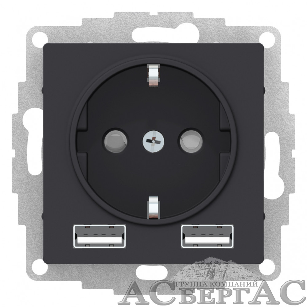 Розетка с заземлением 16А c 2-мя USB (карбон) Atlas Design Systeme Electric