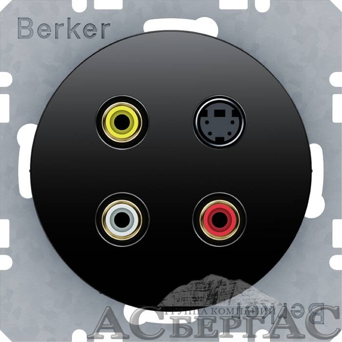 Тройная розетка RCA/S-Video (черный) R.1/R.3 Berker