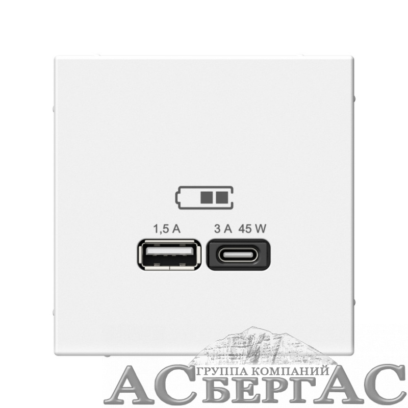 Розетка USB, A + тип-C 45Вт высокоскор.заряд. QC, PD, механизм (белый) ARTGALLERY Systeme Electric
