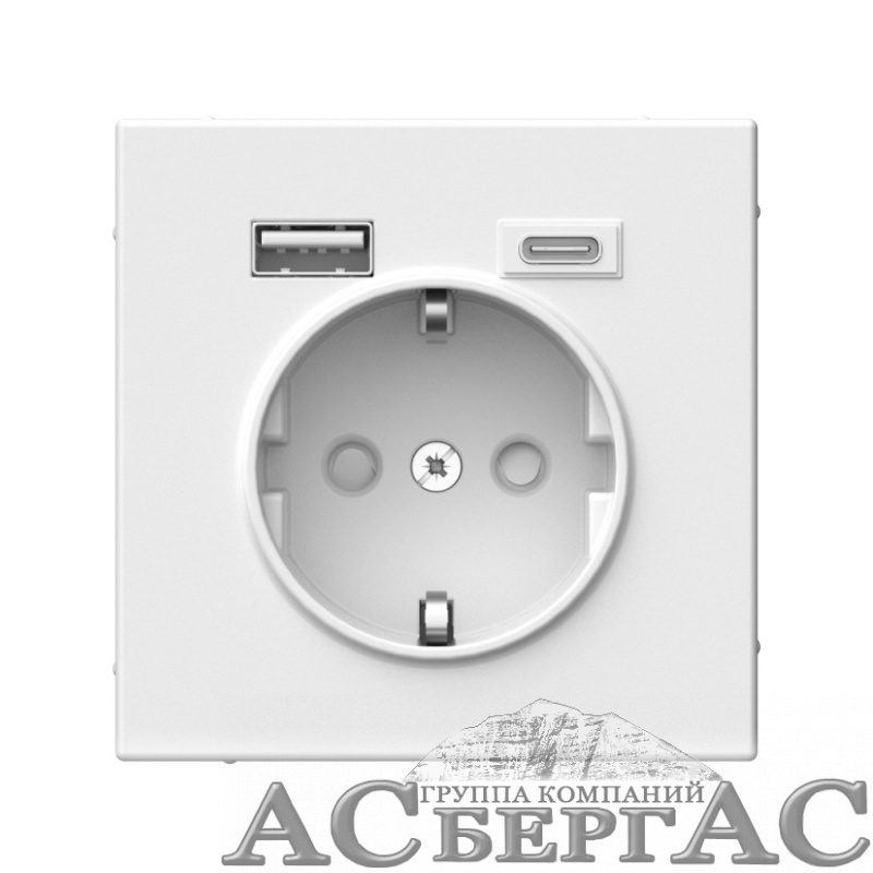 Розетка 16А с 2 USB A+C, 5В/2,4А/3,0А, 2х5В/1,5А, механизм (белый) ARTGALLERY Systeme Electric