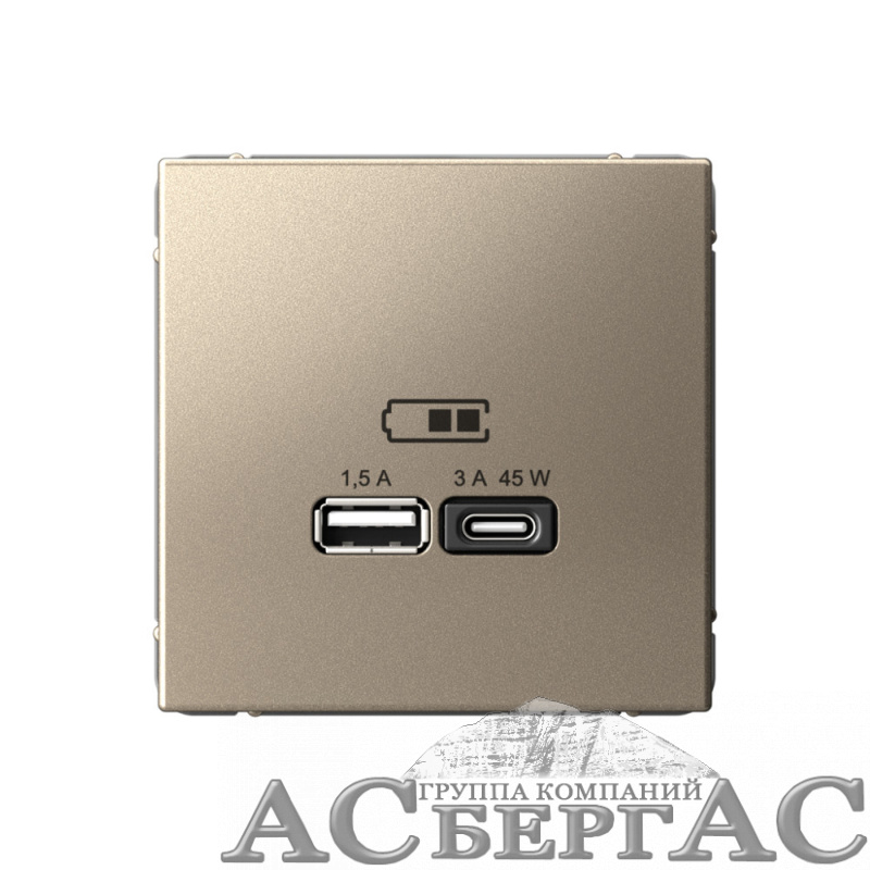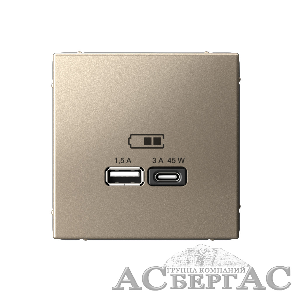 Розетка USB, A + тип-C 45Вт высокоскор.заряд. QC, PD, механизм (шампань) ARTGALLERY Systeme Electric