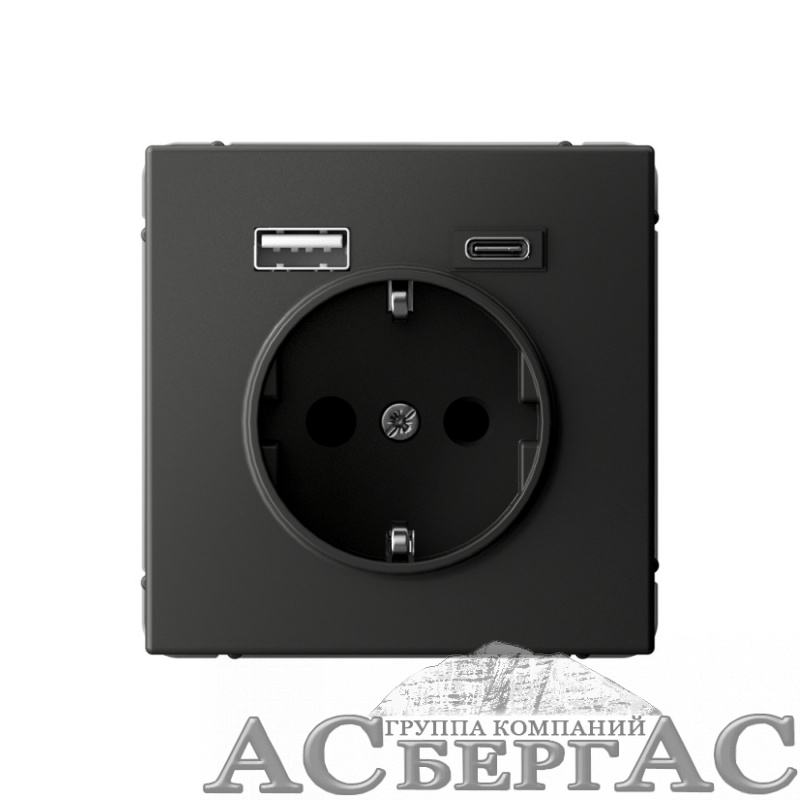 Розетка 16А с 2 USB A+C, 5В/2,4А/3,0А, 2х5В/1,5А, механизм (базальт) ARTGALLERY Systeme Electric