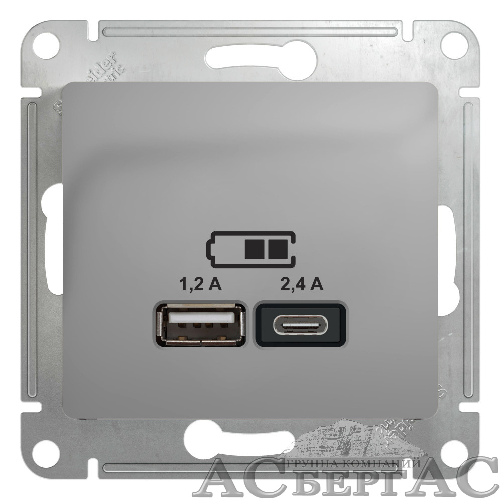 Розетка USB A+С, 5В/2,4А, 2х5В/1,2 А, механизм (алюминий) Glossa Systeme Electric
