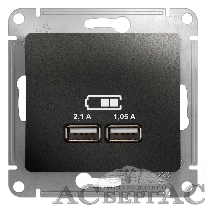Розетка USB 5в/2100ма, 2х5в/1050ма, механизм (антрацит) Glossa Systeme Electric