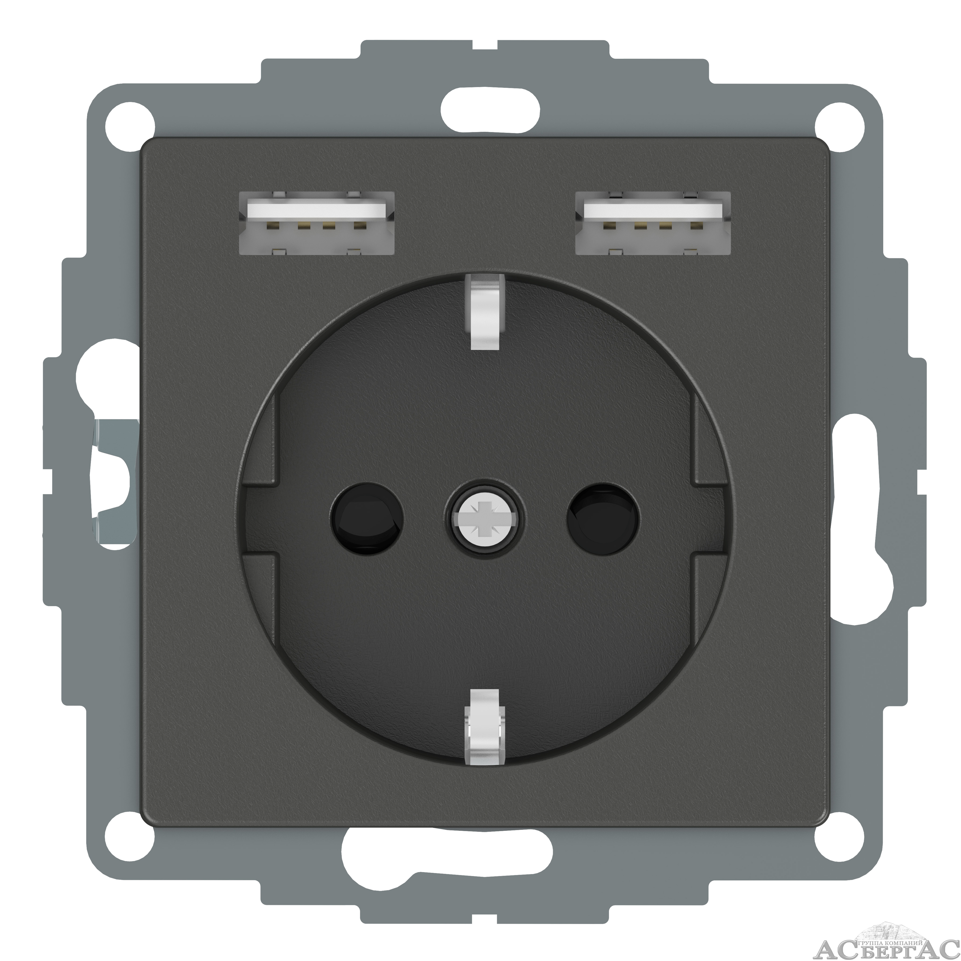 Розетка SCHUKO с 2 USB c зарядным устройством 2,4 a, sm (антрацит) Merten Schneider Electric