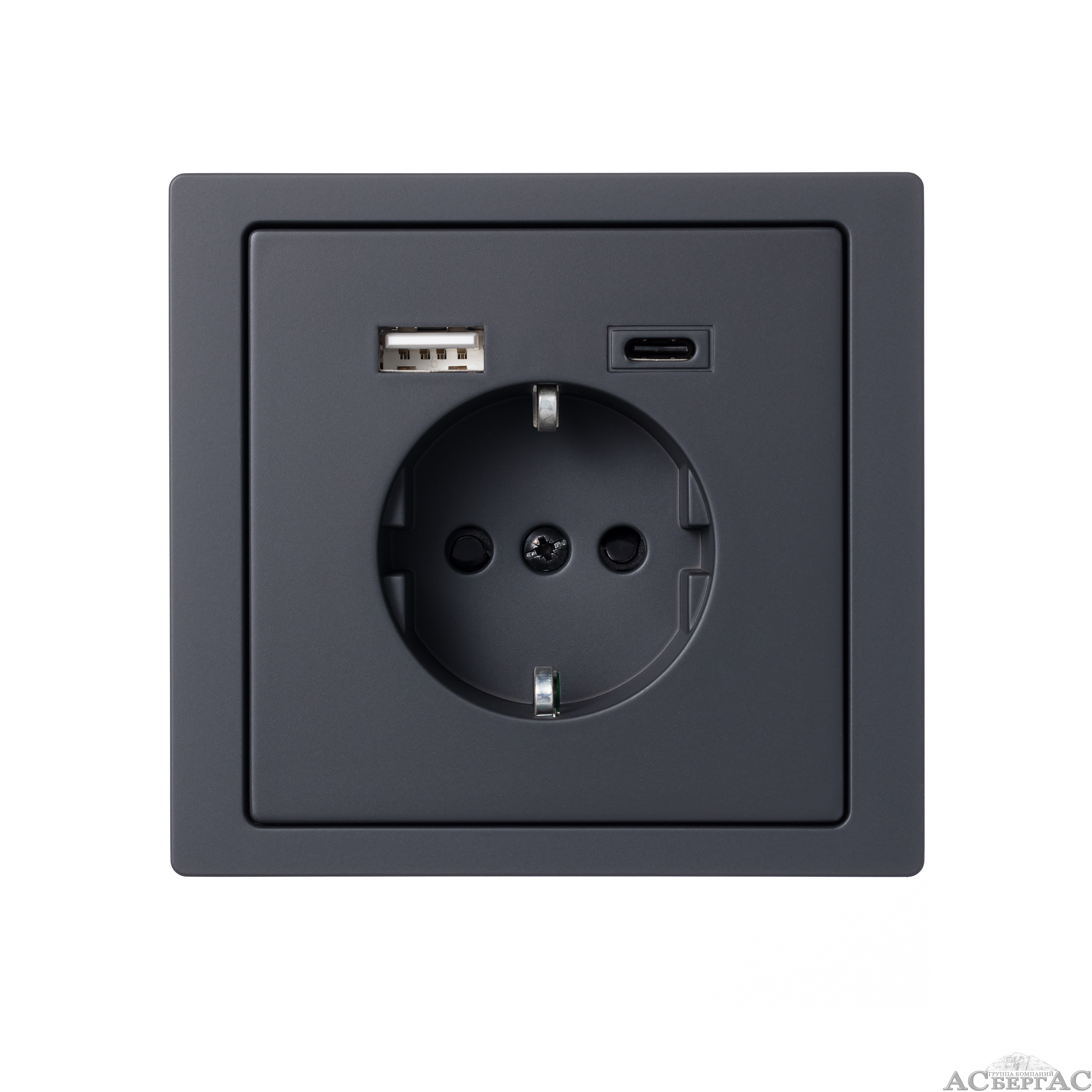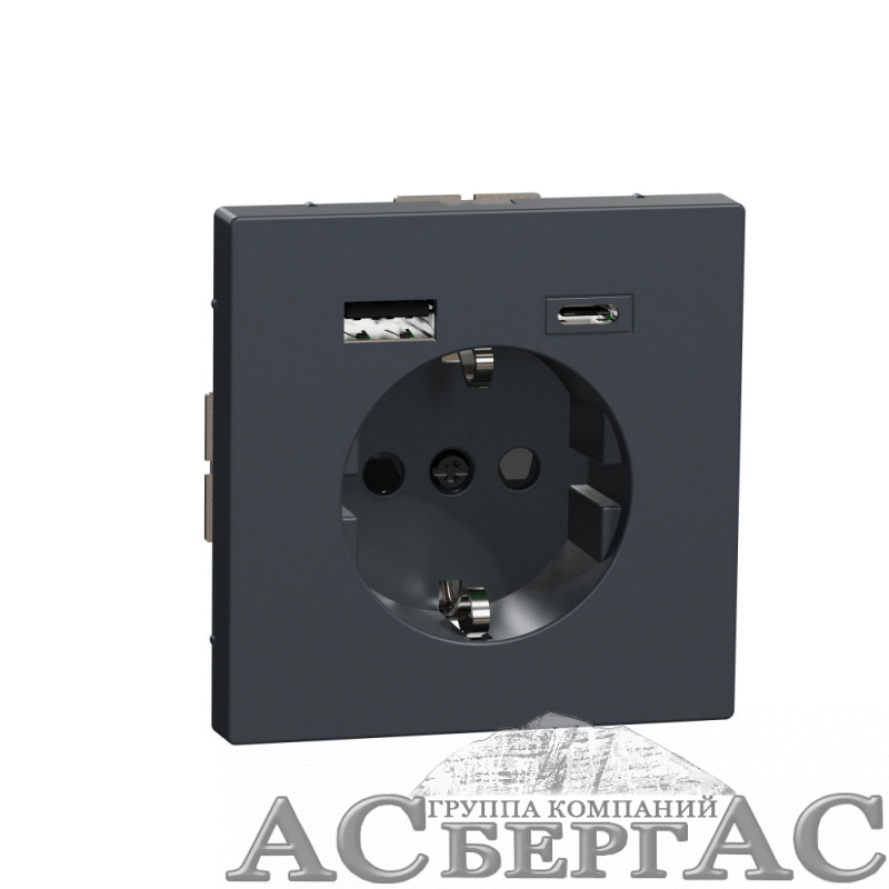 Розетка силовая 16 A с зарядкой USB A+C 3 A (антрацит) Merten D-Life Schneider Electric