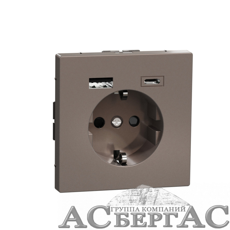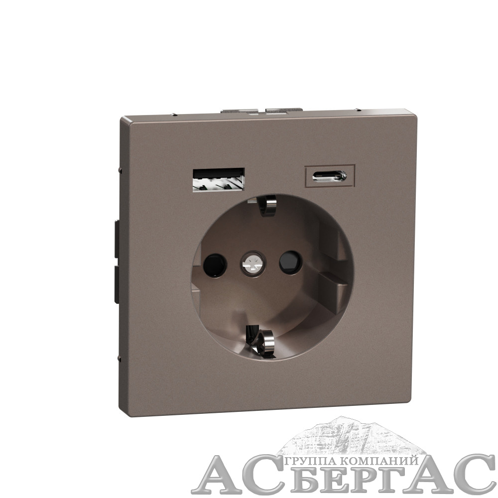 Розетка силовая 16 A с зарядкой USB A+C 3 A (мокко) Merten D-Life Schneider Electric