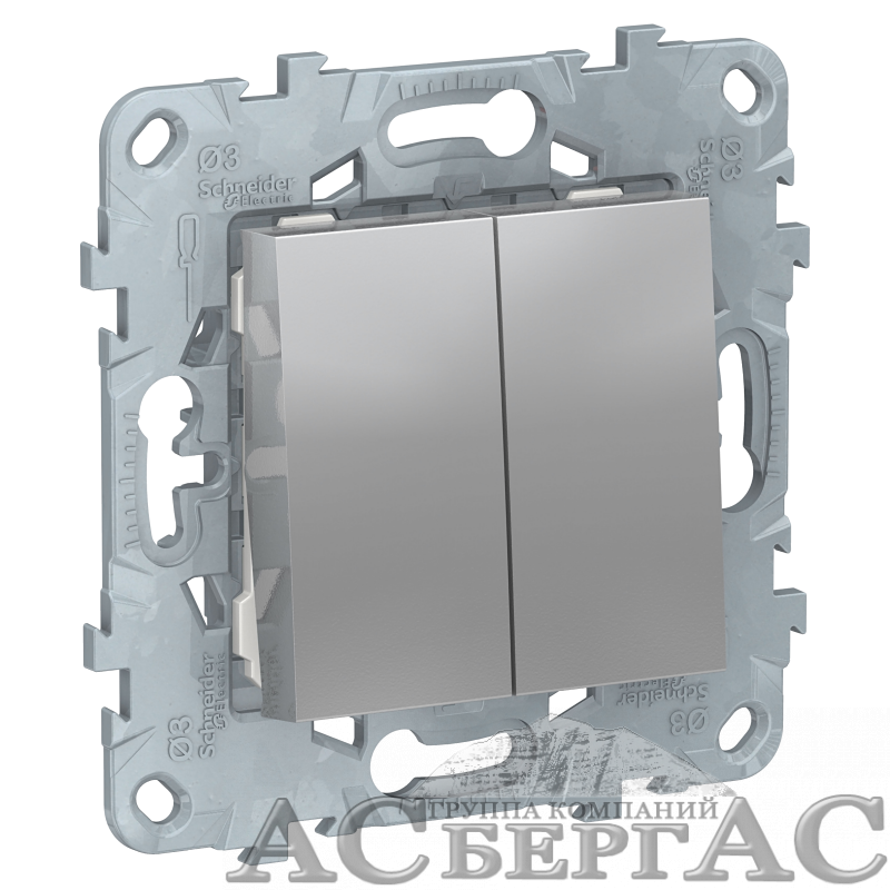 Выключатель 2-клавишный (сх. 5) (алюминий) Unica New Schneider Electric