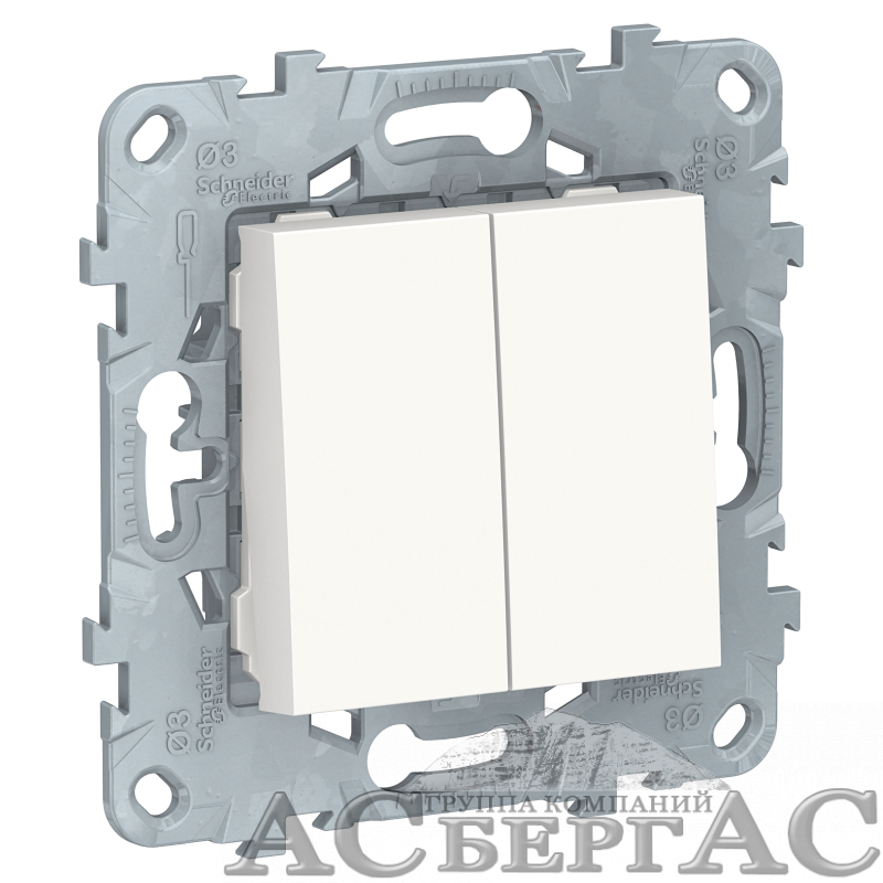 Переключатель 2-клавишный проходной с двух мест (сх.6+6) 10АХ, 250В (белый) Unica New Schneider Electric