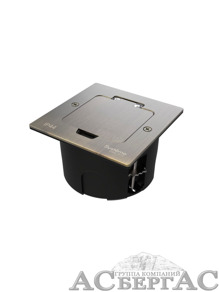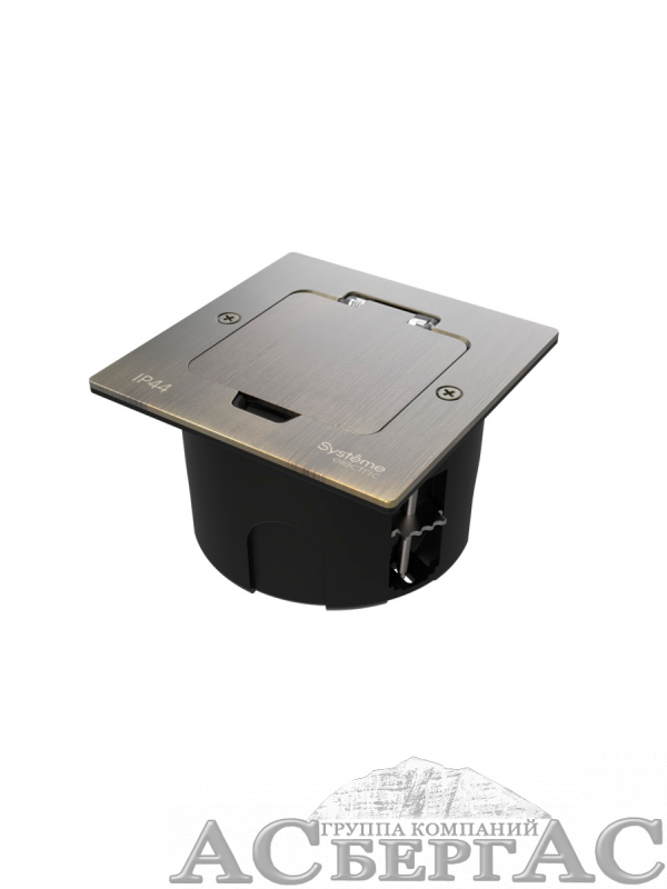 Лючок на 2 модуля IP44 с монтажной коробкой для стены/фальшпола/стола (античная латунь) MultiDesk Systeme Electric
