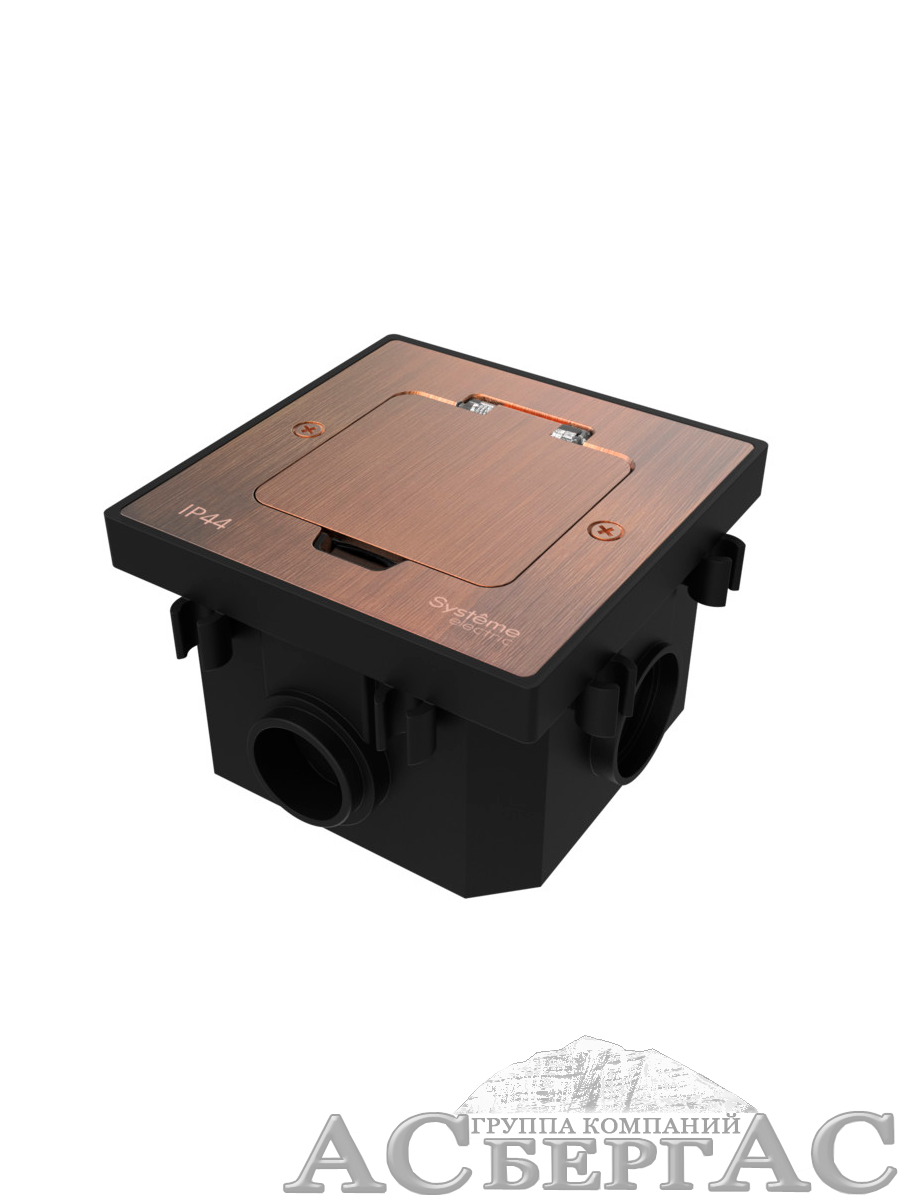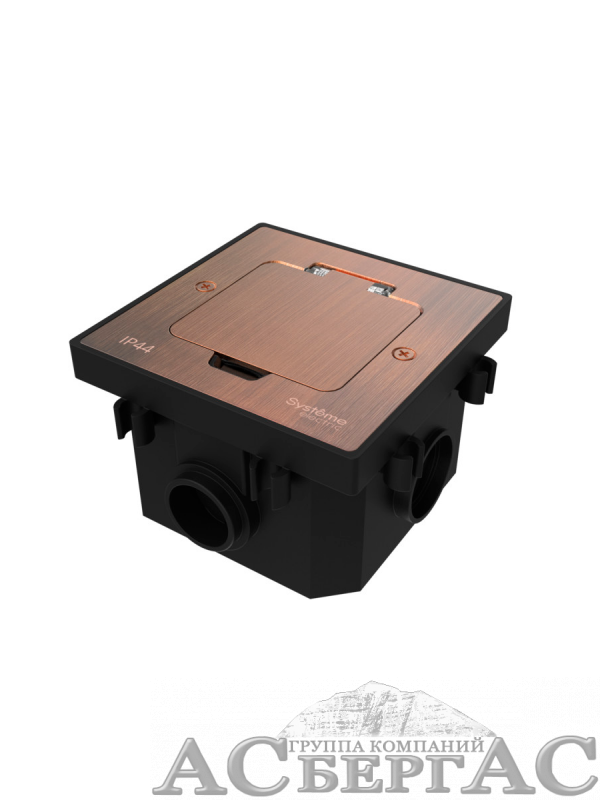 Лючок на 2 модуля IP44 с монтажной коробкой для бетонных полов (медь) MultiDesk Systeme Electric