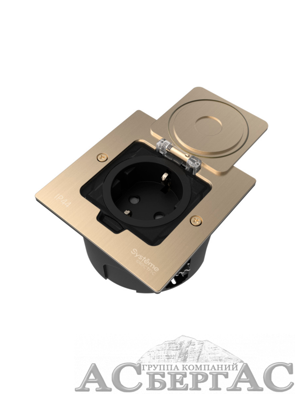 Лючок с розеткой 2К+З, 16А/250В, IP44 с монтажной коробкой для стены/фальшпола/стола (никель) MultiDesk Systeme Electric