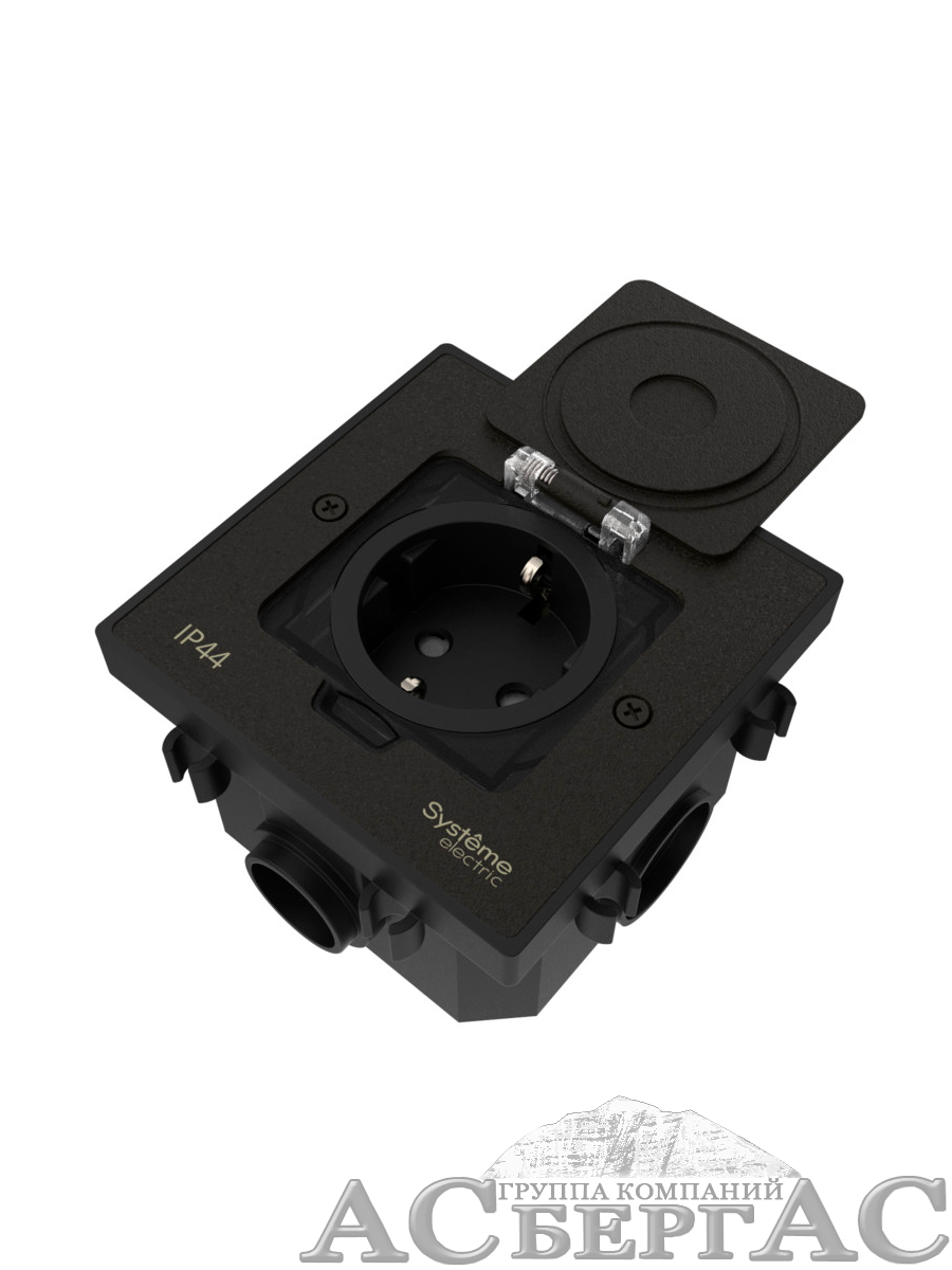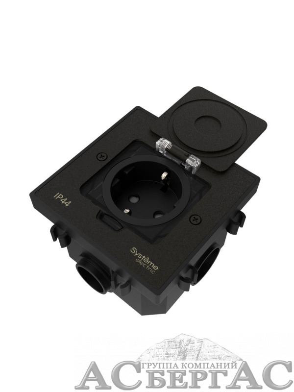 Лючок с розеткой 2К+З, 16А/250В, IP44 с монтажной коробкой для бетонных полов (черный матовый) MultiDesk Systeme Electric