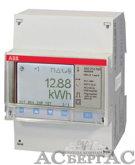 A42 212-200 Счетчик 1-фазный активно-реакт. энергии(2Н),1-тарифный,кл. точности 1,трансф.вкл. на ток 1(6)А, имп. выход,RS485,тип ABB