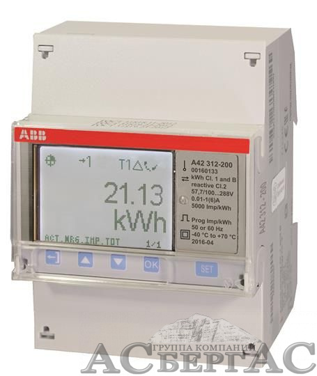 A42 312-200 Счетчик 1-фазный активно-реакт. энергии(2Н),кл. точности 1,трансф.вкл. 1(6)А,2 вх/вых,RS485,тип ABB
