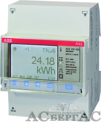 A42 413-200 Счетчик 1-фазный активно-реакт. энергии(2Н),4-тарифный c тарификатором,кл. точности 1,трансф.вкл. 1(6)А,2 вх/вых,M-bus,тип A42 413-2 ABB