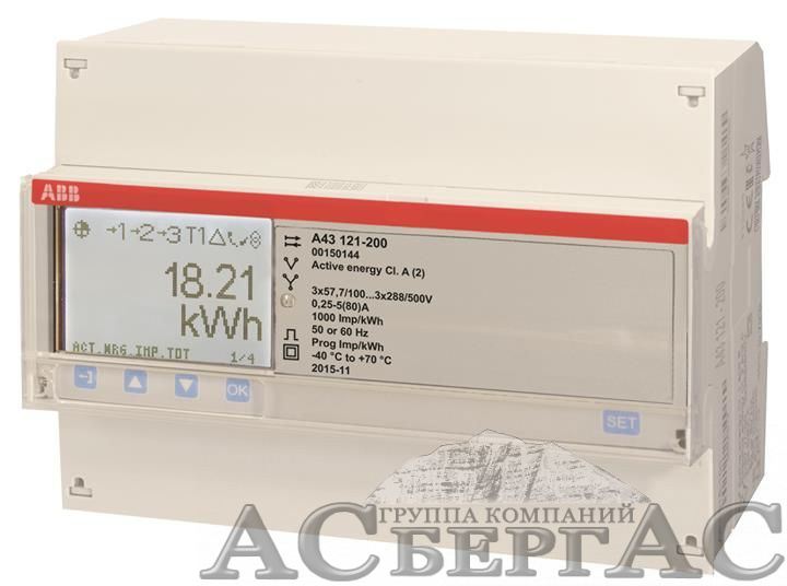 A43 121-200 Счетчик 3-фазный активной энергии,1-тарифный,кл. точности 2,прямого вкл. 5(80)А, имп. выход,тип ABB