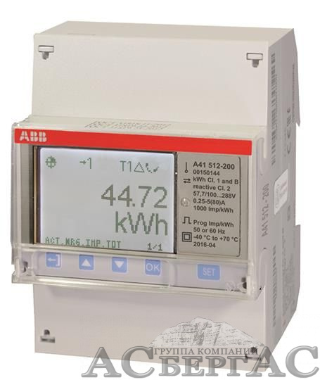 A41 512-200 Счетчик 1-фазный акт-реакт. энерг.(2Н),4-тарифный c тарификатором,кл. точн. 1,прямого вкл. 5(80)А,4 вх/вых,RS485,тип ABB