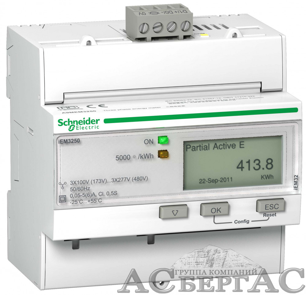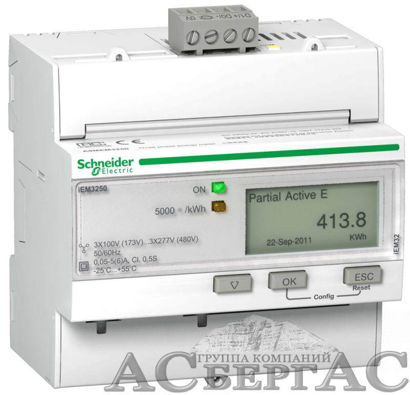 - Заменён на:Счетчик электроэнергии 3-ф актив.-реакт., 4 тарифа, RS-485, кл. точн. 0.5S, транс. вкл., iEM3155 Schneider Electric