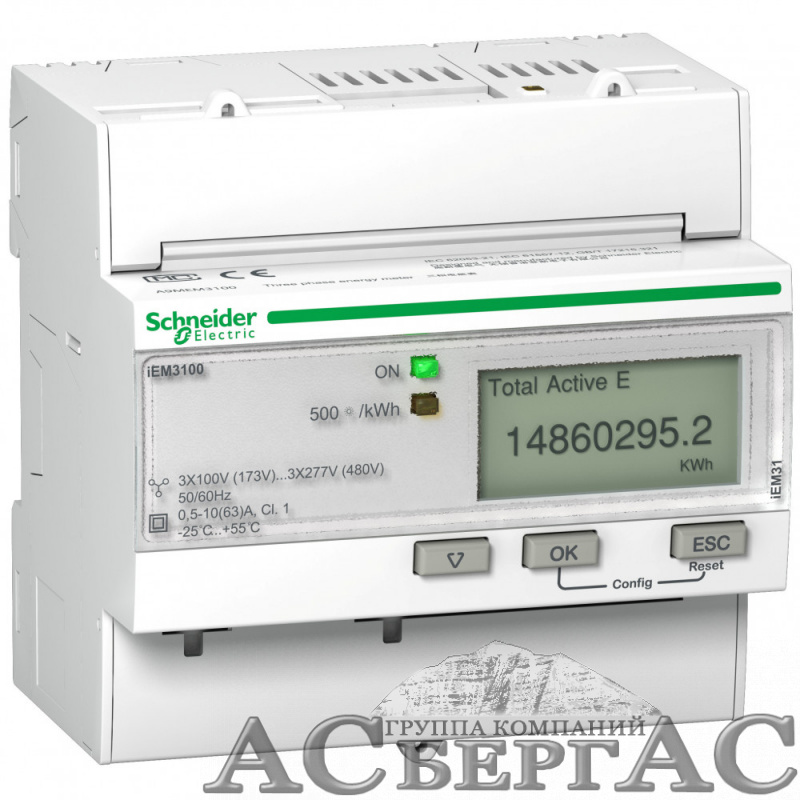 - Заменён на:Поверенный счетчик 3-ф актив. энергии iEM3310 125A, 1 тариф, имп. вых. Schneider Electric