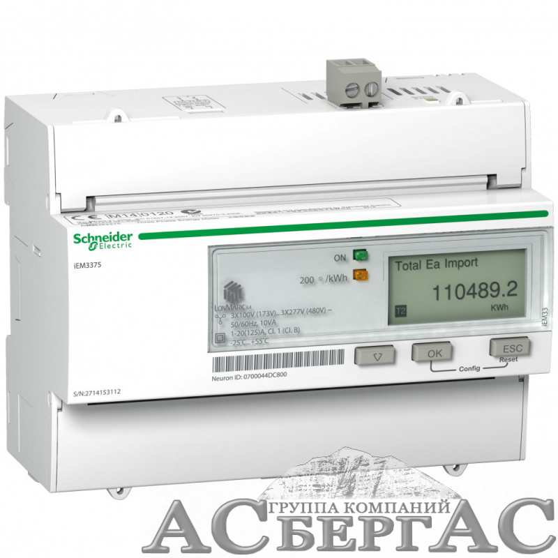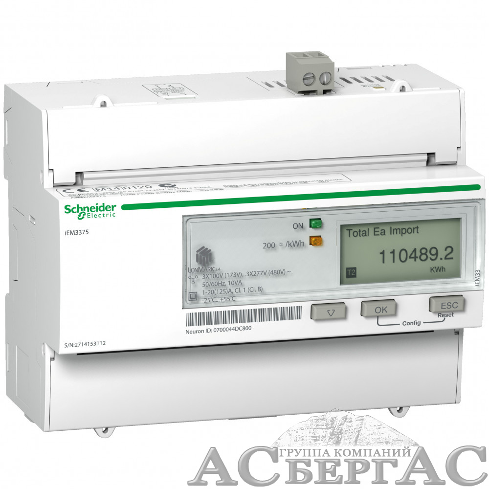 Поверенный счетчик 3-ф актив-реакт iEM3375 125А, 4Т. 1DI, по 4 квадрантам, Lon Schneider Electric