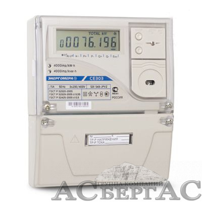 CE303 S31 543 JR1QVZ CE831M01.03 Счётчик акт. и реакт.эн. 3-фазный, 4 тариф., 5-10А, кл.т.0,5S, ЖКИ, оптопорт, RF433, резерв.пит. Энергомера