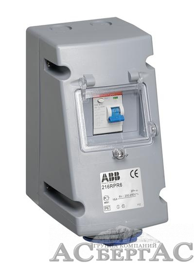 232 RPR6 Розетка c УЗО в боксе 32A, 2P+E, IP44 ABB