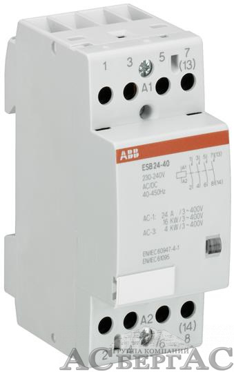 - Заменён на:ESB25-20N-06 Контактор модульный (25А АС-1, 2НО), 230В AC/DC ABB