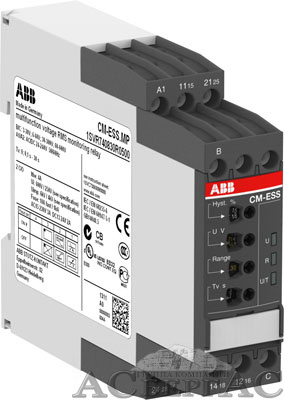 CM-ESS.2P Однофазное реле контроля напряжения (диап, изм, 3-30В, 6-60В, 30-300В, 60-600 AC/DC), 24-240В AC/DC, 2ПК, пруж, клеммы ABB