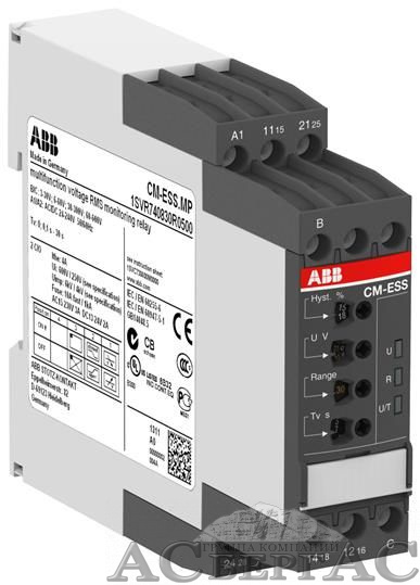CM-ESS.MP Однофазное реле контроля напр.многофункц. (диап, изм,3-30В, 6-60В, 30-300В, 60-600AC/DC), 24-240В AC/DC, пруж, клеммы ABB