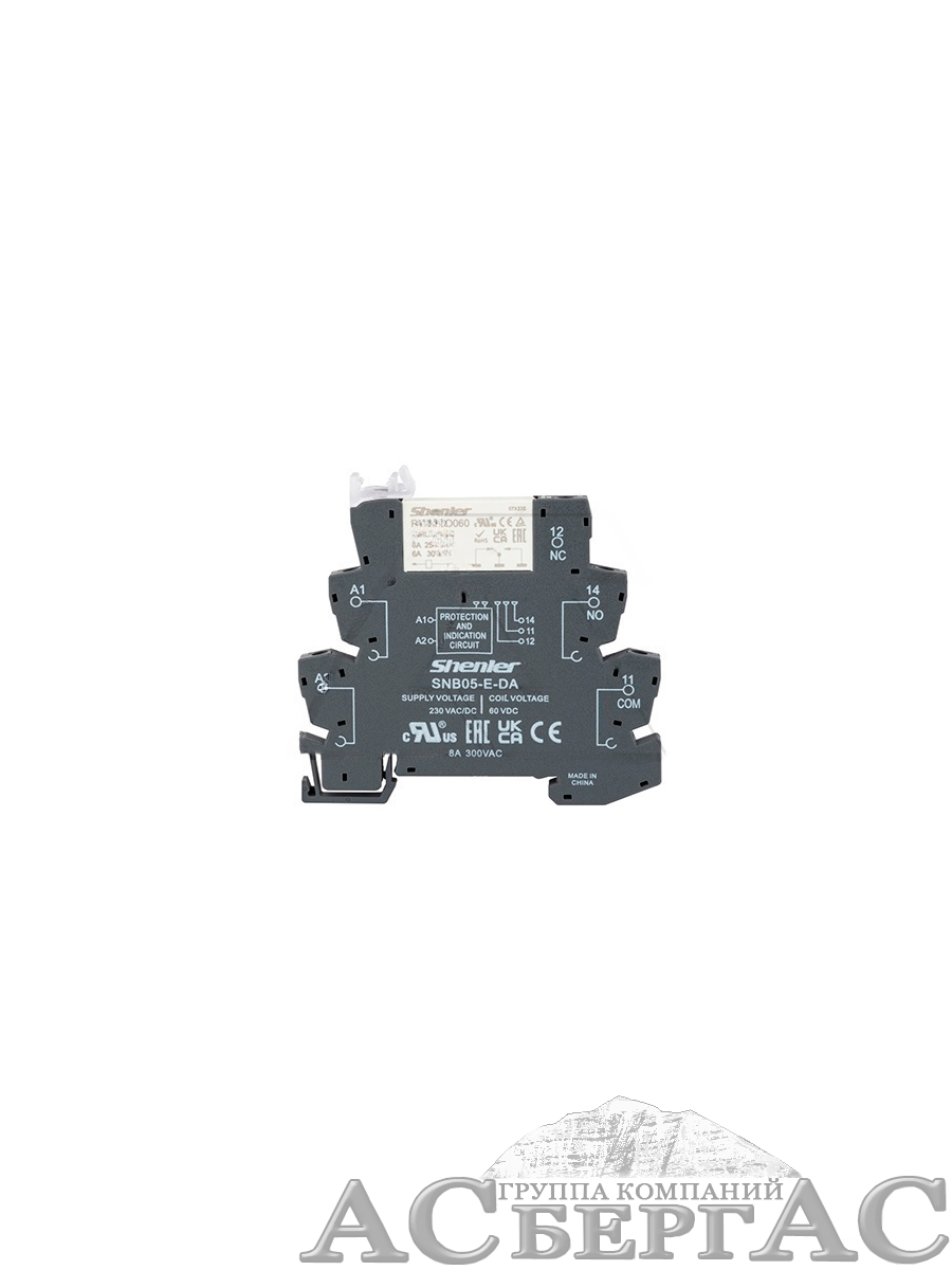 Реле интерфейсное с колодкой, винт. заж., 1CO, 6A, 230VAC/DC, LED, W=6.2mm Shenler