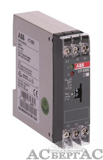 CT-EBE Реле времени (миг. с началом паузы) 24ВAC/DC, 220-240ВАС (0,1..10с) 1ПК ABB