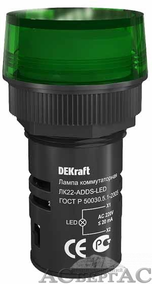 ЛК22-ADDS-GRN-LED Лампа коммутационная зеленая 22мм 220B AC DEKraft