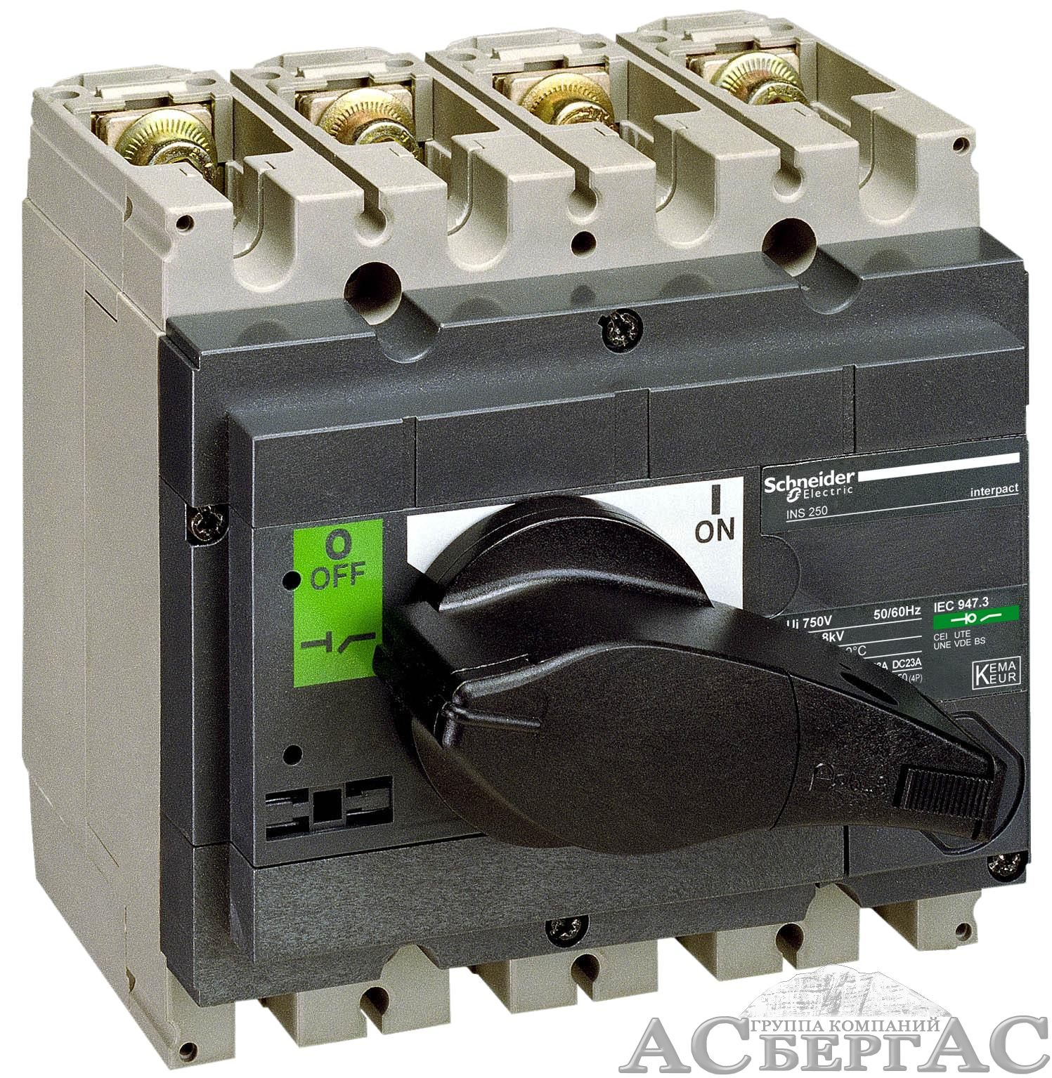 Выключатель-разъединитель Interpact INS250, 4P, 200А (с черной ручкой) Schneider Electric