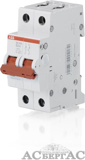 SD202/40 Рубильник 2-полюсный модульный 40А (красный рычаг) ABB