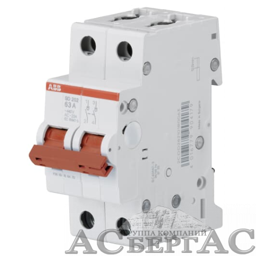 SD202/50 Рубильник 2-полюсный модульный 50А (красный рычаг) ABB